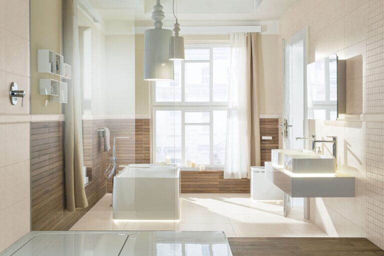 Pentru un aspect rustic, vă recomandăm să combinați plăci de faianță în culori calde, precum cele din Colecția BASE, cu elemente de decor din lemn sau piatră. De asemenea, puteți alege o gresie cu aspect de lemn pentru pardoseală, pentru a completa atmosfera primitoare de casă.